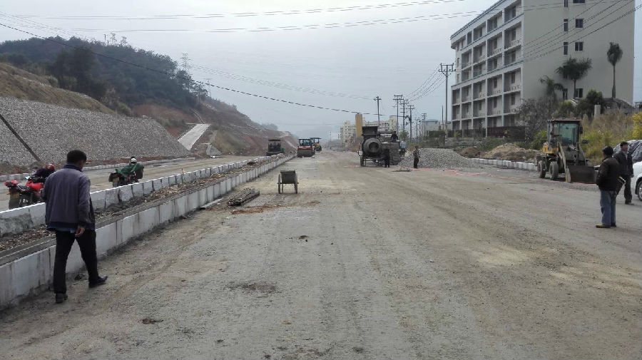 項目情況:項目起點與青竹路相接,終點與已建成的北三環(huán)路(福建龍州工業(yè)園區(qū)段)相連,全長2700米,寬40米,概算投資20640萬元,分兩個道路施工標段和一個高邊坡防護施工標,于2013年10月8日開工建設。目前已完成土石方90萬方,約占總量的92%,雨污水管道2100米,約占總量的80%,路基成型1820米,總計完成投資14000萬元(含拆遷)。目前已開始部分路段路面結構層施工