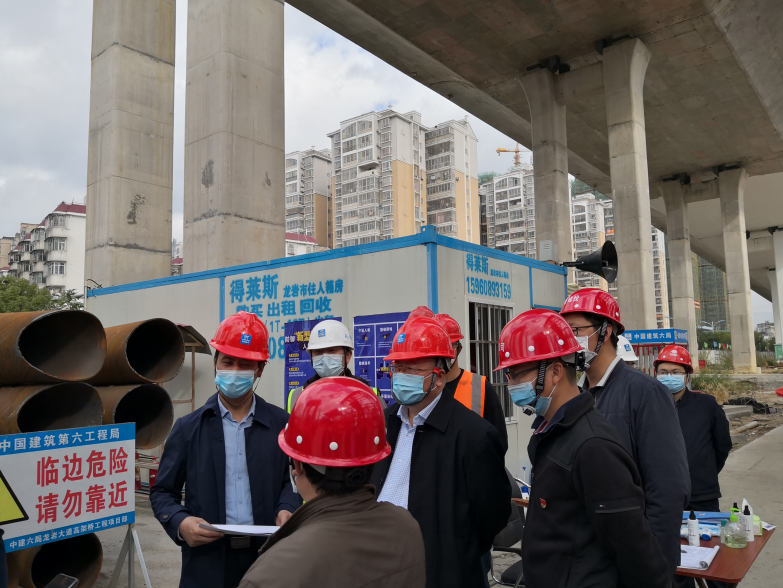 檢查組一行先后來到龍巖大橋和浮東路項目部,聽取了項目現(xiàn)場疫情防控落實情況的匯報,并察看項目現(xiàn)場防護物資配備情況。檢查組一行強調(diào),目前疫情防控正處在關(guān)鍵時期、考驗期,要科學(xué)防治、精準(zhǔn)施策,始終保持抗擊疫情一刻不停歇、一絲不松懈的狀態(tài),嚴(yán)把關(guān)口,嚴(yán)防死守,進一步做好疫情防控各項工作。