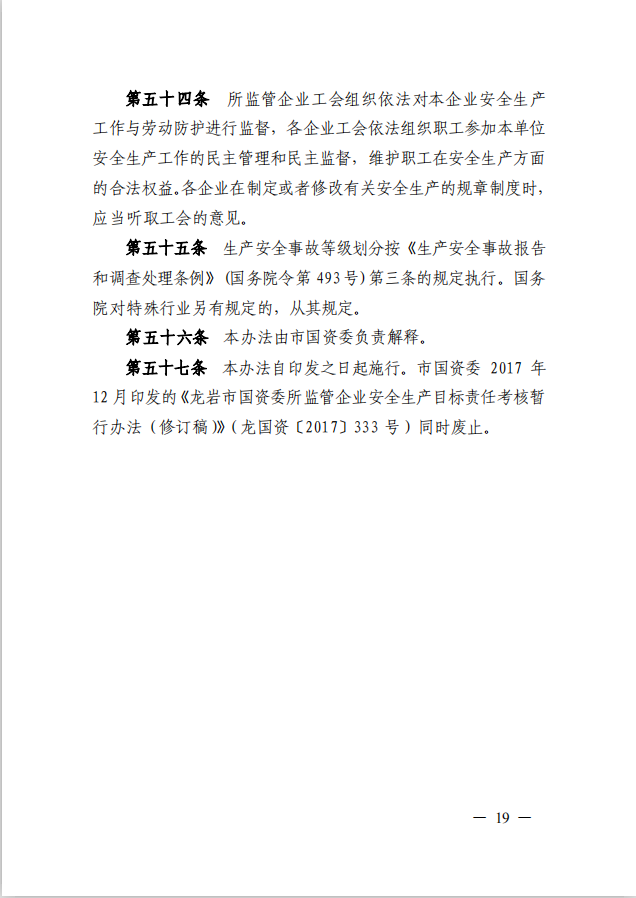 龍巖市國資委關(guān)于印發(fā)《龍巖市國資委所監(jiān)管企業(yè)安全生產(chǎn)監(jiān)督管理辦法》的通知(龍國資[2020]62號(hào))